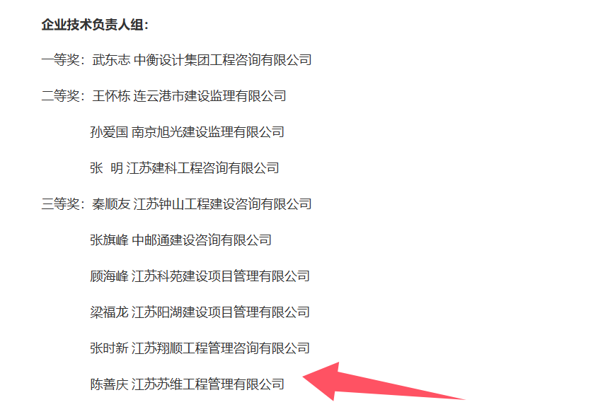 近日,第二届全国工程监理行业知识竞赛江苏赛区选拔赛结果尘埃落定,公司总工程师陈善庆凭借深厚的专业素养与出色的综合表现,成功斩获企业技术负责人组三等奖,并将作为江苏赛区的杰出代表,参加第二届全国工程监理行业知识竞赛。