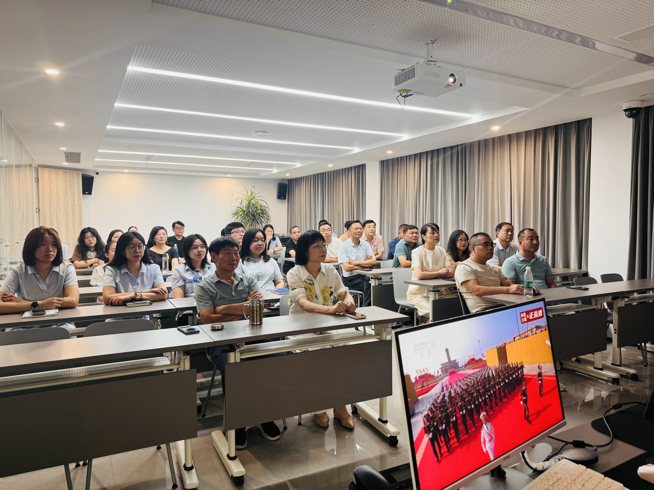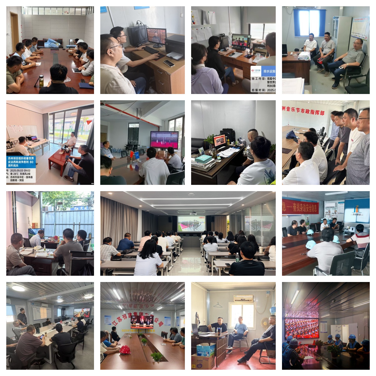 公司组织全体党员、员工通过“集中+分散”方式同步收看直播,总部多功能厅与分公司、项目部会场同频共振,全体苏维同仁共同见证强国强军新成就,感悟伟大抗战精神。