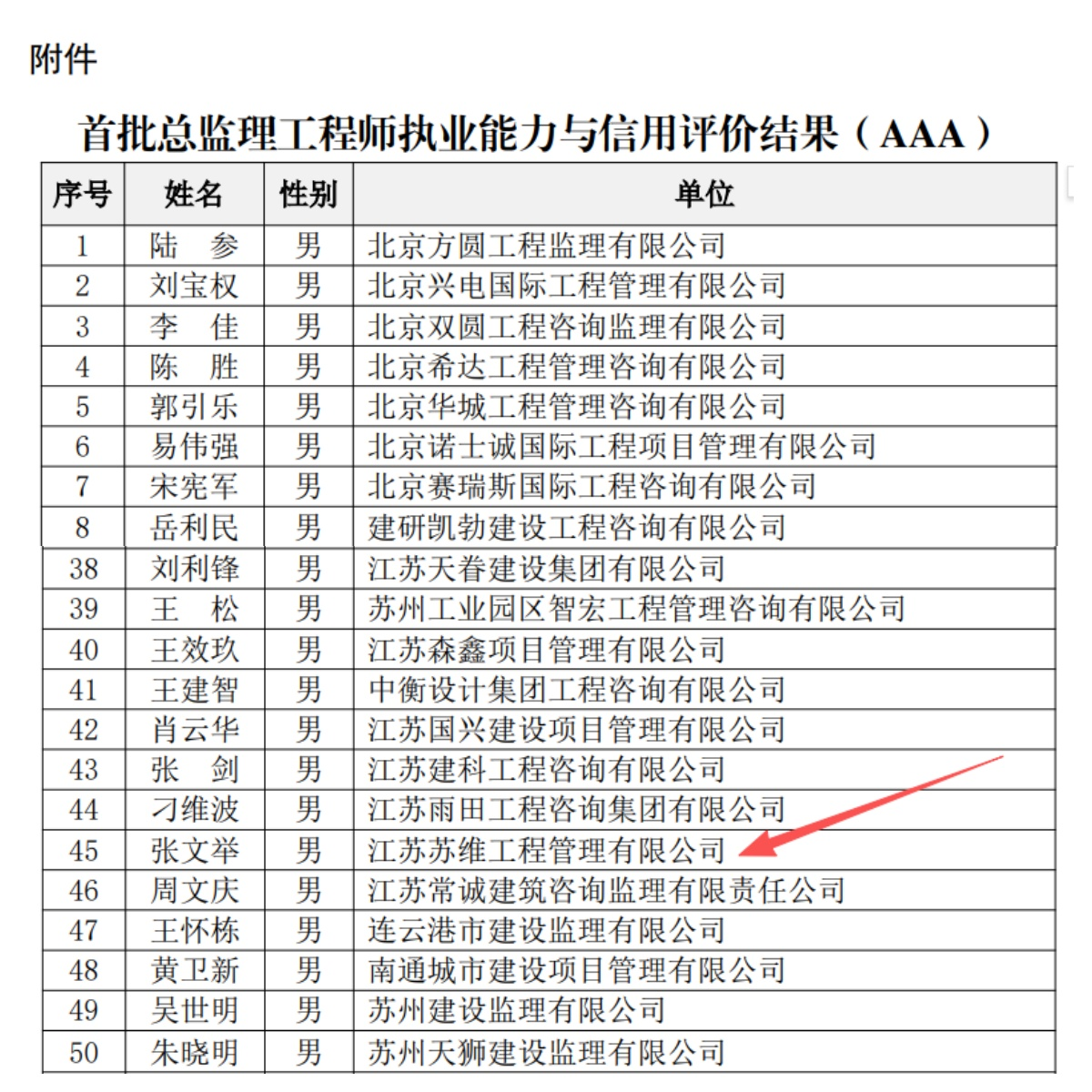 近日,中国建设监理协会公布了全国首批总监理工程师执业能力与信用评价结果,我司张文举同志凭借扎实的专业功底与丰富的监理经验,成功获评3A级,扬州市仅一人获此殊荣,充分展现了我司在人才培养体系构建与信用建设方面所取得的显著成效。